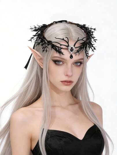 1件复古优雅女士金属牛角额饰森林树枝发饰,自然仙女森系发箍 - 58867 黑色 - 查看 1