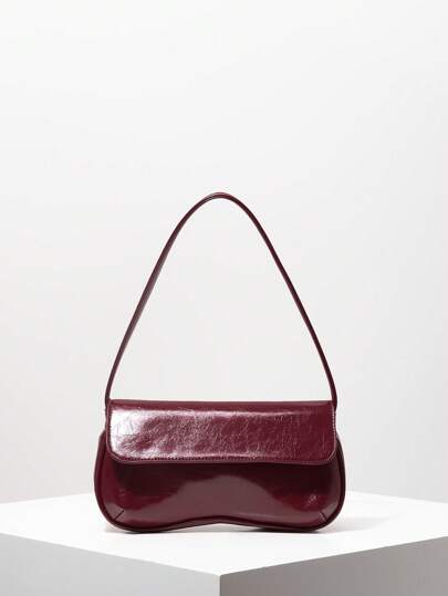 1 件复古仿皮长棍腋下包、翻盖单肩包、亮面漆皮手提包、酒红色钱包、圣诞手提包,适合通勤、聚会、工作(图案随机)