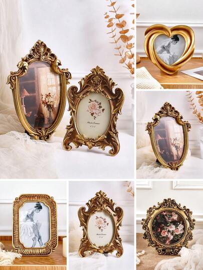 1 件复古金色相框,树脂复古欧式古典花卉装饰相框,室内舒适家居装饰照片展示,适合摄影展览和摄影道具 - 彩色 - 查看 10