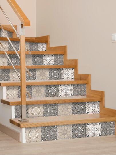 1入組復古圖案地板貼紙自粘PVC瓷磚貼紙裝飾 - 彩色 - 查看 8