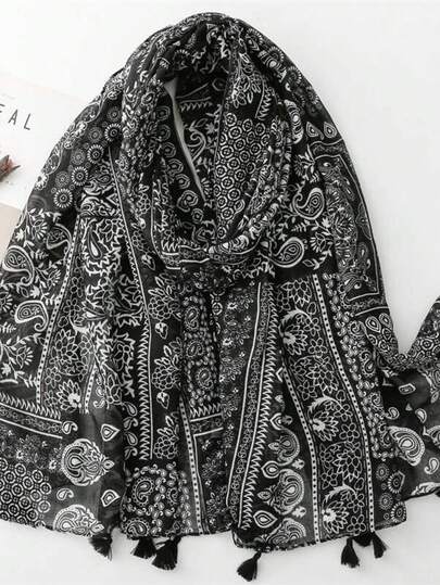 1 件女士复古围巾,可用作披肩/围脖,适合夏季空调房间 - 黑色 - 查看 1