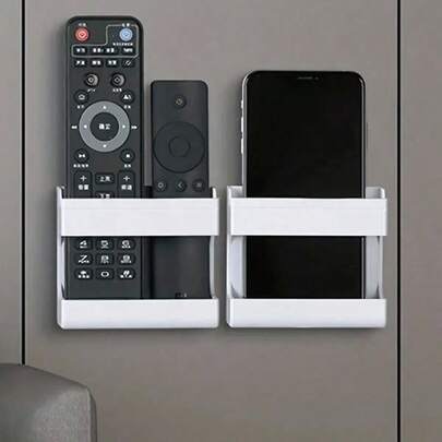 1pc Wall Mounted Remote Control Storage Box, Mobile Phone Charging Bracket, Enclosure Type Storage Rack
