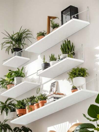 1 件壁架,无需钻孔壁挂式浮动搁板,装饰性储物架,适用于厨房、卧室、书架 - 白色 - 查看 5