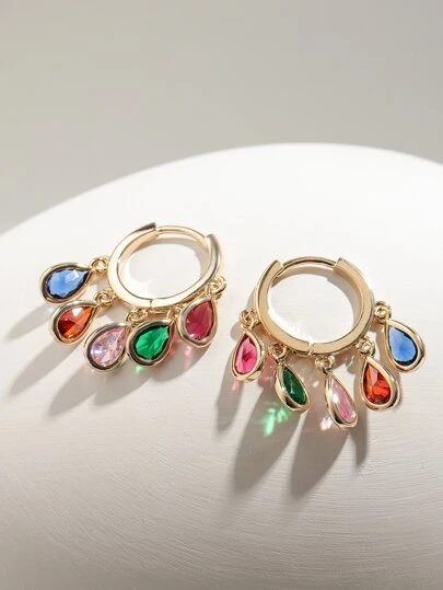 1入組水滴方晶鋯石裝飾耳環銅首飾類
