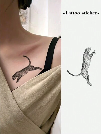 1入組防水、耐汗臨時豹紋刺青貼紙,男女皆宜,一次性使用 - 黑色 - 查看 1