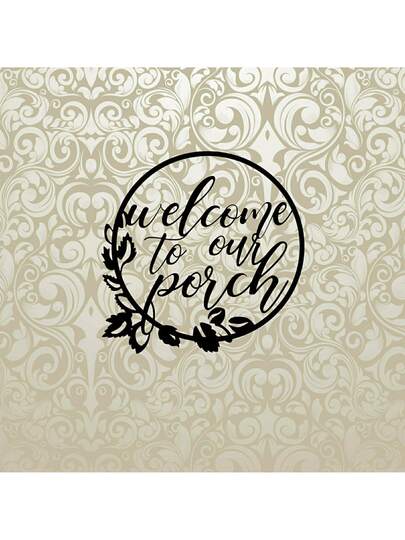 1入組歡迎至我們的門廊金屬質感牆標誌 - 黑色 - 查看 1