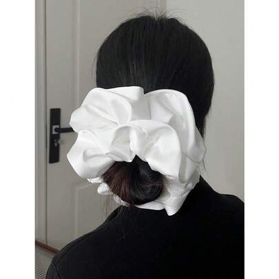 1pc White Faux Silk Super Large Fluffy High Elasticity Soft Smooth Texture Fashionable Casual Comfortable Wear All-Match Women's Hair Scrunchie With A Touch Of Luxury Scrunchies Hair Ties Scrunchy Hair Ties Ponytail Head Accessories Elastic Band Beauty Home Hair Accessories