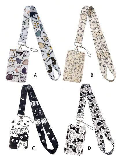 1 件白色身份证夹挂绳,带有可爱的猫咪图案,适合女性、女孩和儿童放置身份证、钥匙扣、徽章,用于学校用品、返校 - 彩色 - 查看 1