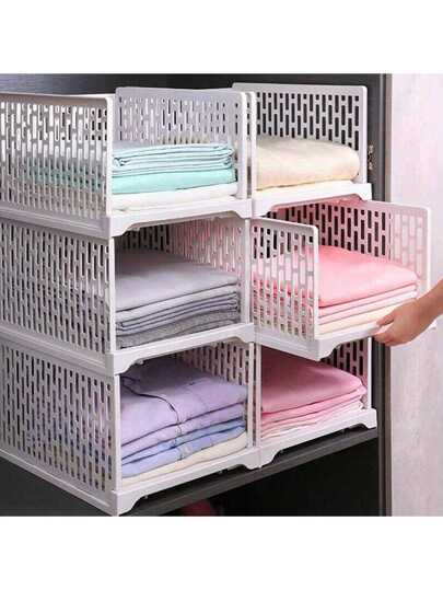 1pc White Wardrobe Drawer Units Organizer Clothes Closet Stackable Storage Boxes Folding Storage Basket - 白色 - 查看 1