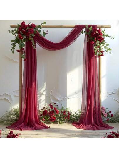 1 件酒红色/香槟色透明雪纺窗帘,适用于派对装饰、生日装饰、婚礼拱门、桌布、接待背景、婚礼装饰面料、万圣节、圣诞节(300 * 75 厘米/180 * 30 厘米) - 酒紅色 - 查看 1