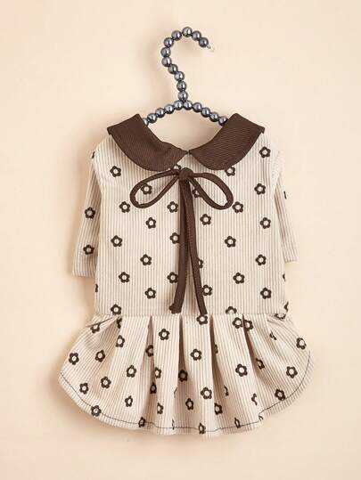 1 件冬季保暖加厚灯芯绒复古连衣裙,带彼得潘领和蝴蝶结装饰,适合宠物狗和猫 - 棕色 - 查看 1