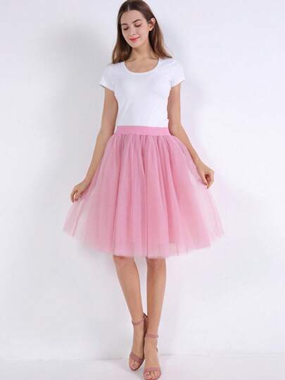 1 件女士彩色欧美薄纱多层 A 字形芭蕾舞裙秋季女士服装 - 粉色 - 查看 1