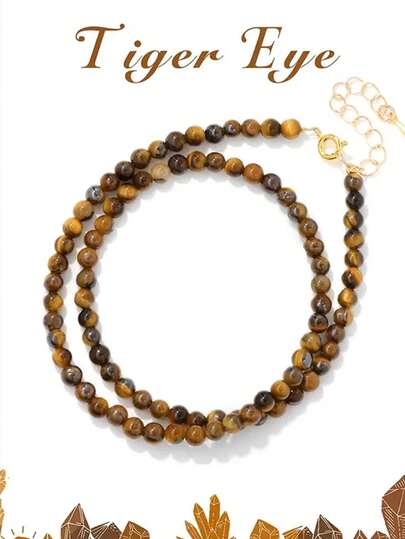 1 件女士时尚项链天然石紫水晶绿松石虎眼珠精美珠子(无纸卡包装) - 虎眼石色 - 查看 1