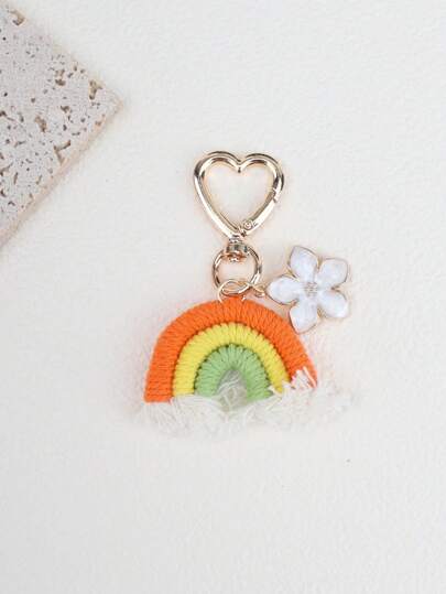 1 件女士手工纱线流苏彩虹吊坠北欧风格可爱花朵包饰配件背包装饰钥匙扣适用于包包汽车配件女士 - 彩色 - 查看 1