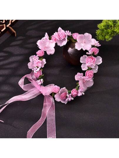 1 件女士头带森林风格人造花皇冠新娘发饰海滩度假头饰摄影道具伴娘发带情人节 - 粉色 - 查看 1