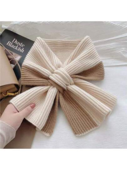 1条女士撞色交叉针织围巾,时尚百搭柔软围巾披肩,适合搭配连衣裙