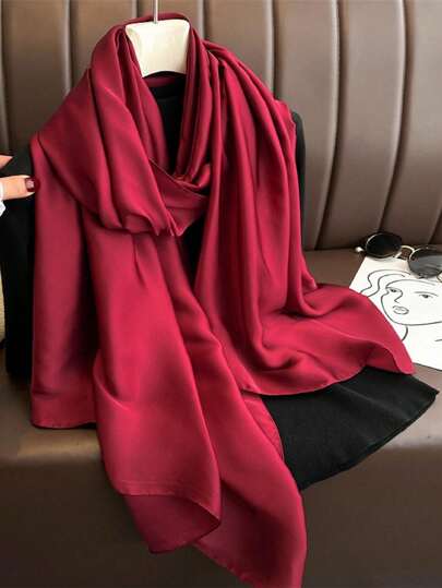 1件装 女士创意时尚个性化时尚丝滑渐变彩绘披肩围巾,适合搭配连衣裙 - 酒紅色 - 查看 1