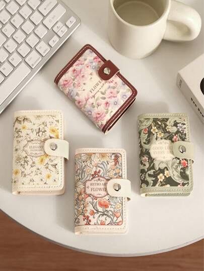 1 件女士可爱皮革卡夹,适用于女性、青少年、女孩的身份证、名片、银行卡、信用卡,花卉印花,现代设计 - 彩色 - 查看 10