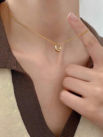 1 件女士时尚简约几何空心圆链项链,适合送礼和日常使用 - 金黃色 - 查看 1