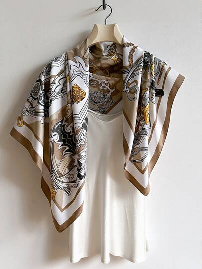 1条女士新款90厘米大方巾,复洛克风格仿丝提花头巾/披肩,百搭连衣裙 - 多色 - 查看 1