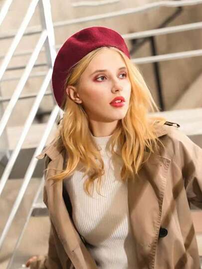 1 件男女通用纯色贝雷帽,百搭经典时尚休闲风格,透气舒适遮阳,适合日常通勤、徒步旅行、露营、骑自行车、海滩、绘画、摄影 - 酒紅色 - 查看 5