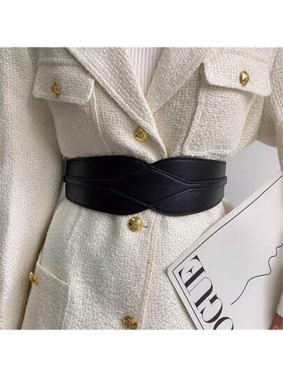 1條女款彈性黑色腰帶,新復古時尚裝飾腰帶 - 黑色 - 查看 1
