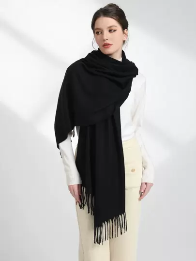 1入組女士經典純色圍巾,230g,適用於所有季節,適合宴會,暖和的披肩或日常使用的頭巾 - 黑色 - 查看 3