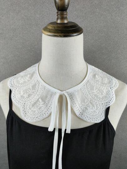 1入女式精緻刺繡和精美空心領,可愛的圓領可拆卸假領,適用於層疊穿搭,白色