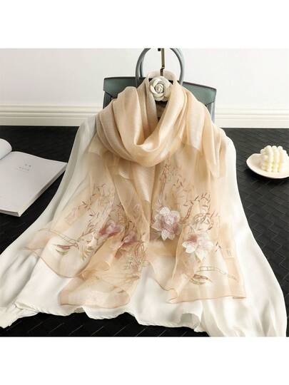 1入女式刺繡絲編優雅風格圍巾,適合日常穿著和家庭晚宴 - 彩色 - 查看 1