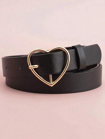 1入時尚簡約的女士黑色pu皮帶,心形扣設計,適用於牛仔褲、休閒使用 - 黑色 - 查看 1