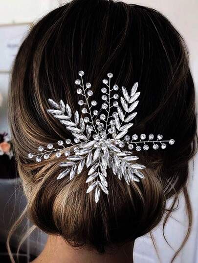 1入手工製作的女性銀色婚禮髮夾,鑲嵌著水晶髮飾,適用於新娘、正式活動和派對 - 銀色 - 查看 1