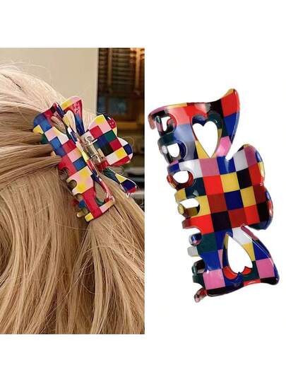 1個女性油畫風格塗鴉醋酸髮夾彩色方格發卡多巴胺髮飾