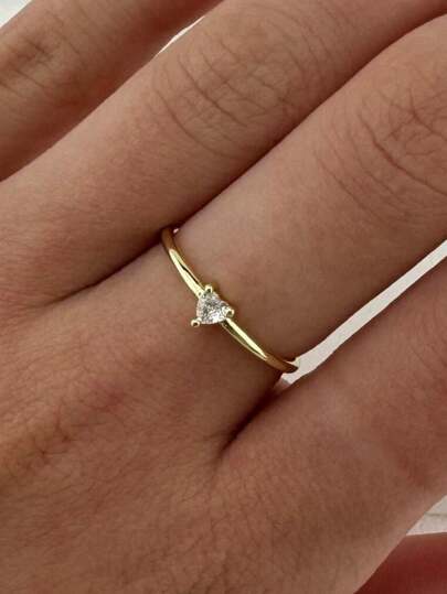 1枚女士戒指,心形黃金婚禮訂婚新娘珠寶鑽石戒指,浪漫時尚 - 金色 - 查看 1