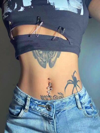 1個女性性感銅質蛇形肚臍戒指,鑲有水晶石,適用於萬聖節派對身體珠寶飾品