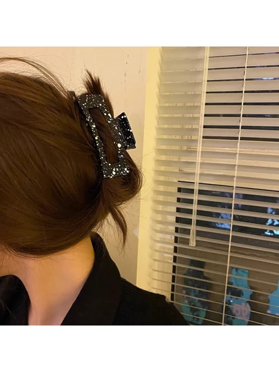 1 件女士黑色亚克力圆盘发夹,带扣,是送给街头风格女孩的完美礼物