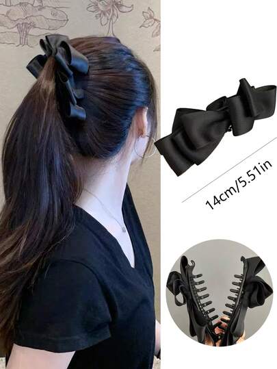 1个女士黑色编织丝带多层大蝴蝶结香蕉夹马尾夹,甜美复古高端发饰,适合日常佩戴、送礼,蝴蝶结,可爱,爪夹,发爪,发夹,发卡,发饰,头饰 - 彩色 - 查看 6