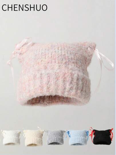 1 件女士卡通耳朵手工钩针针织帽,冬季保暖,适合户外运动和日常装扮,搭配情人节 - 針織帽 - 查看 24