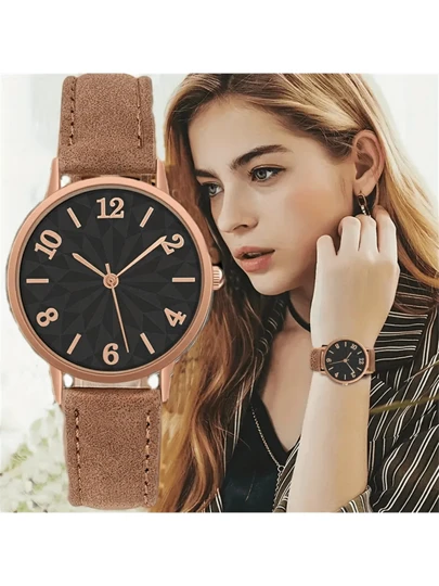 1 件女士优雅简约花卉图案表盘皮革石英腕表,休闲装