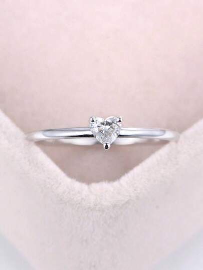 1 件女士镀金心形 Cz 宝石精致结婚订婚戒指,浪漫时尚珠宝情人节、妈妈、母亲、母亲节、礼物 - 銀色 - 查看 10