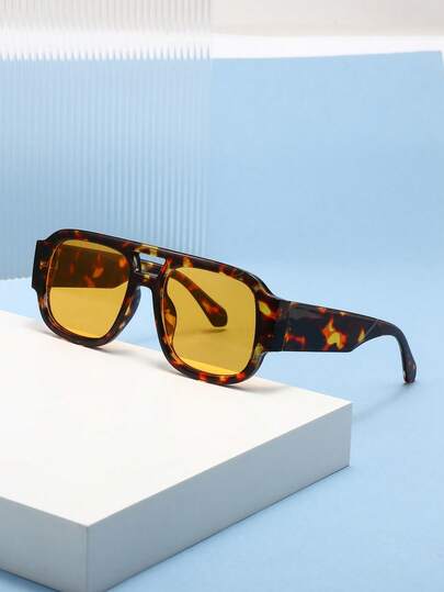 1 件女士塑料方形空心框架粗镜腿复古多色个性化优雅简约欧洲美国日常百搭装饰时尚眼镜 - 彩色 - 查看 10