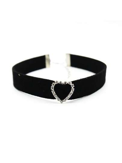 1件装女士复古黑色天鹅绒夸张水钻心形短项链,个性时尚颈链 - 彩色 - 查看 1