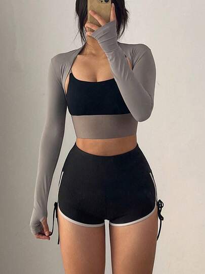 1 件女士肩袖至臂套防晒披肩袖,薄款纯色,适合户外骑行、运动上衣、优雅迷你短上衣、夏季轻薄开衫袖 - 彩色 - 查看 9