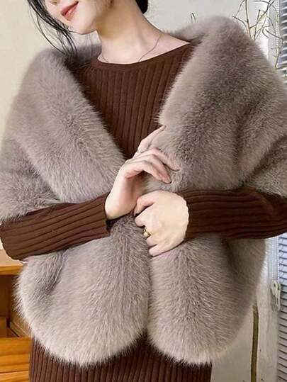 1 件女士纯色仿皮草披肩,柔软舒适保暖披肩,优雅巴洛克风格领口披肩,适合秋冬婚纱或新娘礼服 - 彩色 - 查看 1