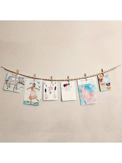 1 件木珠照片展示架 - 悬挂装饰品,适用于房间装饰、幼儿园、艺术展示,配有木夹和悬挂装饰品 - 非常适合 DIY 家居装饰和礼物创意 - 杏色 - 查看 1
