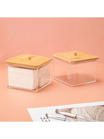 1 个木质盖方形卸妆垫收纳盒,透明卸妆垫盒浴室收纳盒 - 無色 - 查看 1