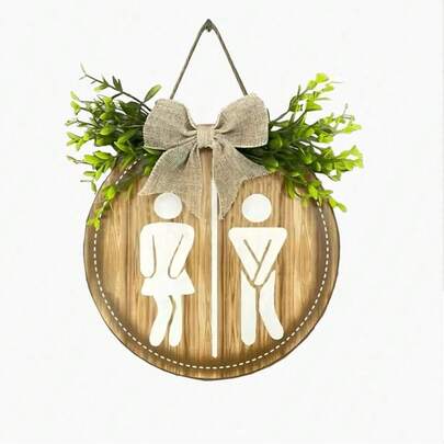 1件装木质厕所标牌,家居装饰标牌,墙面装饰,乡村风格装饰,浴室装饰,场景装饰,房间装饰,家居装饰,办公室装饰