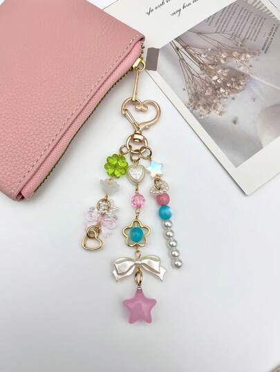 1个Y2K甜美爱心星星蝴蝶结串珠包包挂饰,可爱钥匙扣,手提包装饰配件,购物袋吊坠,少女时尚包包挂饰,汽车钥匙链,手机装饰,适合送给女性的礼物,情人节,母亲节,教师节,毕业季