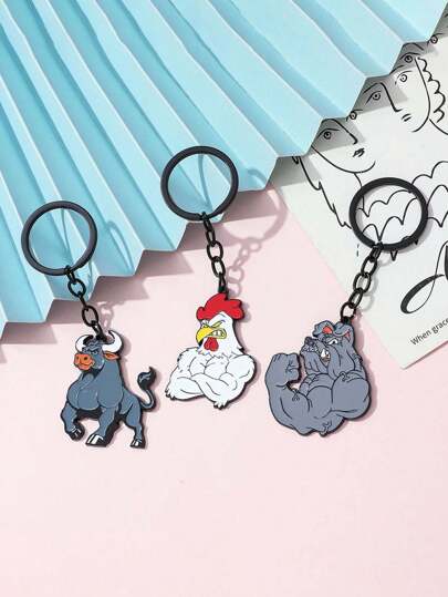 1 件锌合金卡通超级反派小鸡钥匙扣,可爱包包钥匙圈,小狗,钥匙扣礼物 - 彩色 - 查看 13