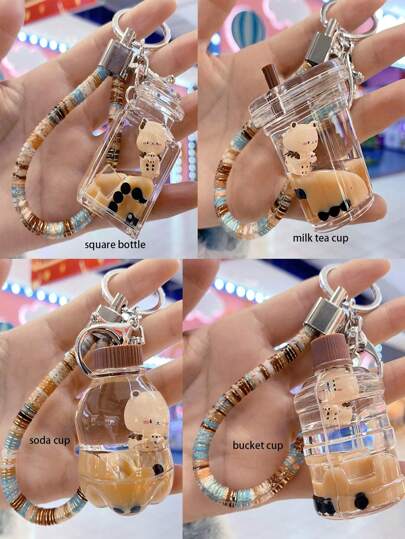 1入組珍珠波霸熊創意配件鑰匙扣背包/袋子/手機吊飾咖啡色蘇打水瓶膠製吊飾可愛禮物/紀念品,男女皆宜 - 多個款式 - 查看 6