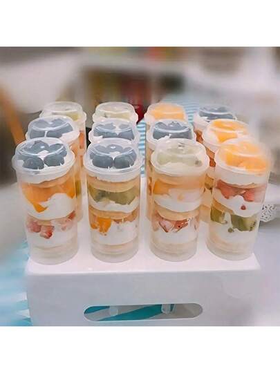 1 件,蛋糕棒射手 - 圆形塑料果冻冰淇淋推拉式容器,带盖子、底座和棍子 - 非常适合甜点、婚礼生日和圣诞派对装饰 - 無色 - 查看 5